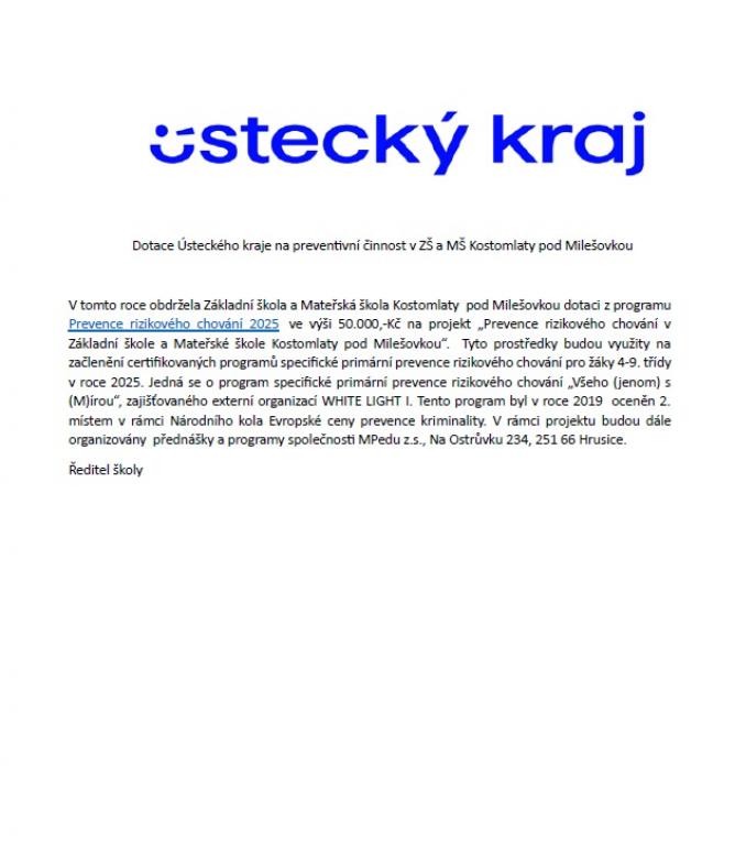 Podpora výuky v ZŠ a MŠ Kostomlaty pod Milešovkou
